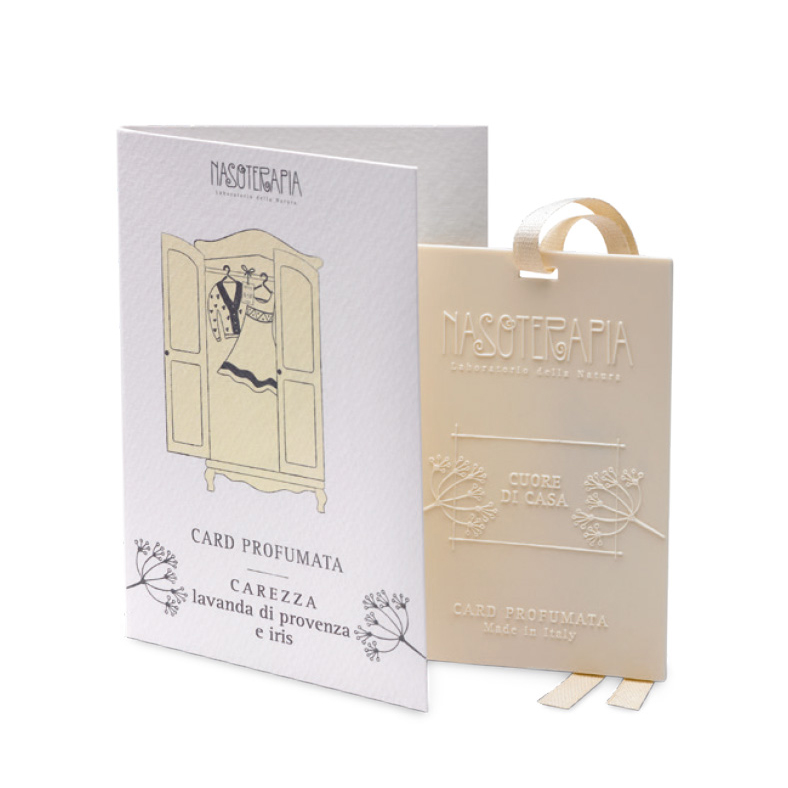 Estrarre la card profumata dall’involucro protettivo, riporla all’interno dei cassetti oppure appenderla all’interno dell’armadio utilizzando il pratico nastrino.