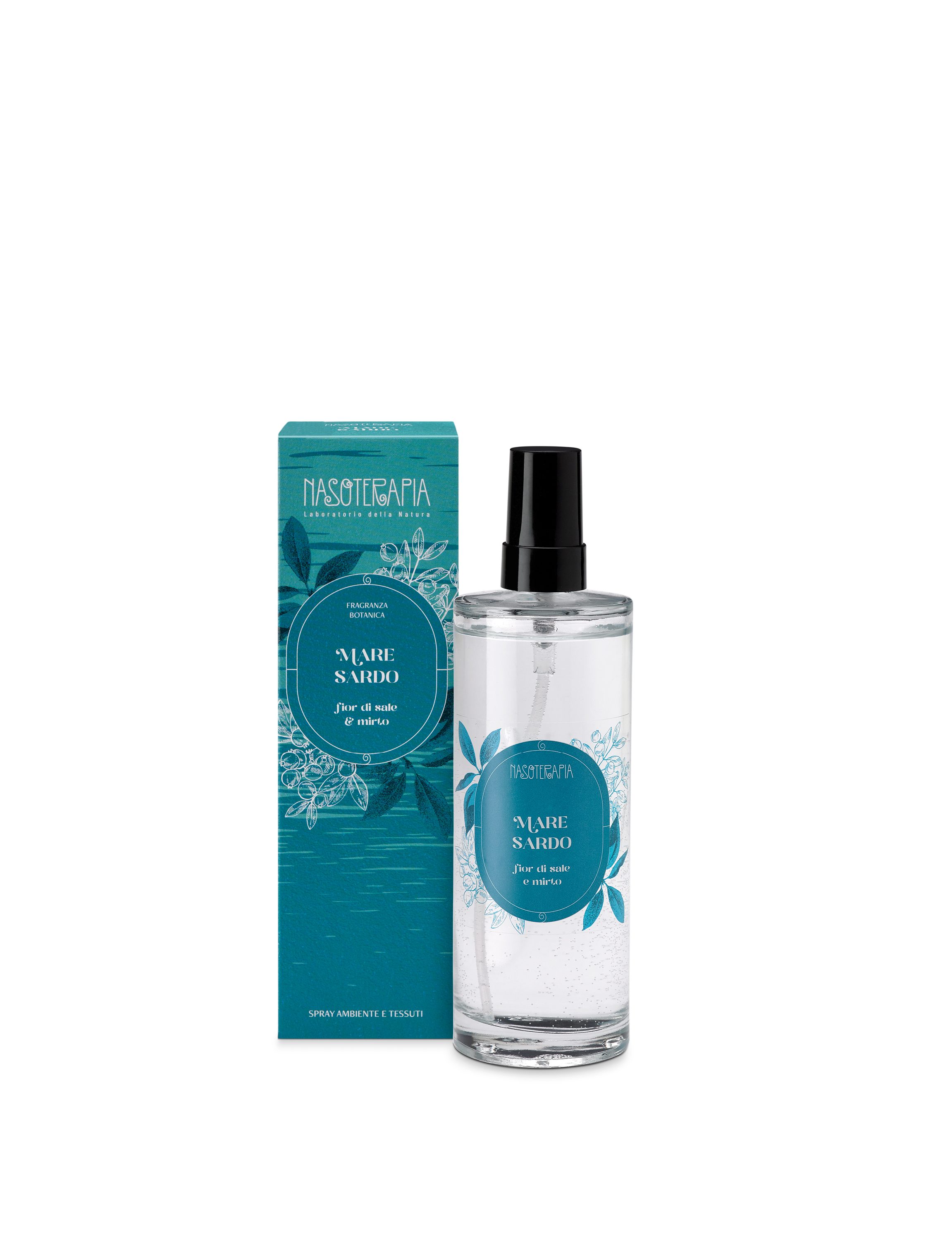 SPRAY AMBIENTE E TESSUTI 100 ml Vento fresco e gocce di salsedine si fondono ai sentori del mirto.