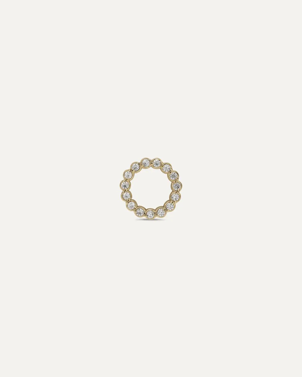 Il cerchio è impreziosito da una serie di zirconi di alta qualità, che riflettono la luce con delicatezza, creando un effetto scintillante e raffinato.