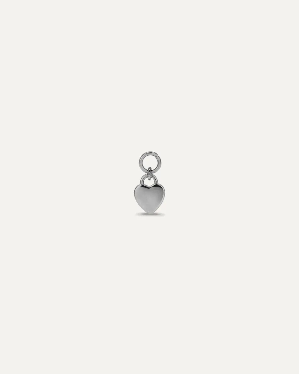 Il cuore liscio, dalle forme pulite e delicate, è appeso a un anello pratico che permette di applicarlo facilmente a braccialetti o collane, esaltando con discrezione ogni look.
