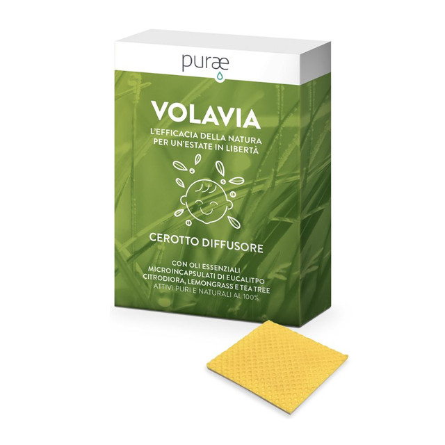 Purae Volavia Cerotto Diffusore Zanzare sono cerotti da applicare su indumenti, passeggini, culle, cinture in modo da profumare le superfici ed allontanare insetti e zanzare.